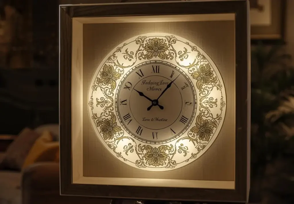 ৫০০০ টাকার মধ্যে বড় সাইজের আকর্ষণীয় 3D ডিজাইনের দেয়াল ঘড়ি হতে পারে সেরা উপহার। Seiko অথবা Citizen জাপানি কোম্পানি ওয়াল ঘড়িগুলো খুবই প্রিমিয়াম এবং উন্নত মানের হয়ে থাকে। বড় এবং সুন্দর ডিজাইনের ঘড়ির জন্য মেটাল এবং গোল্ডেন ফ্রেমের এই ঘড়িগুলো পছন্দ করতে পারেন। সম্ভব হলে নতুন দম্পতির নামের সাথে বিশেষ বার্তা সম্বলিত কাস্টমাইজড গিফট দিতে পারেন।